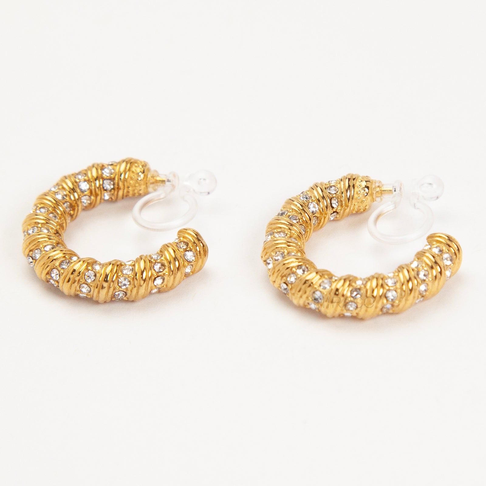 Elegant and eye-catching, these gold diamond twist clip-on hoops feature a sculpted, twisted shape that catches the light beautifully. Made from stainless steel, they’re hypoallergenic, durable, and perfect for non-pierced ears. The invisible clip-on design ensures a natural, comfortable fit all day long.