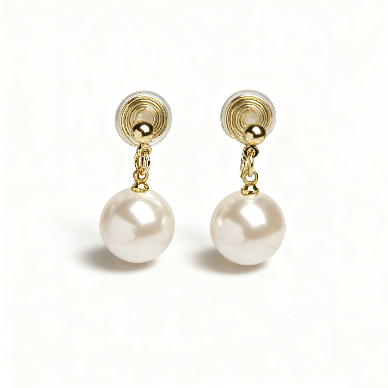Drop Pearl Earrings With Gold Colour Clips, Coil Back Clip On Earrings, White Pearls Dangle Earrings