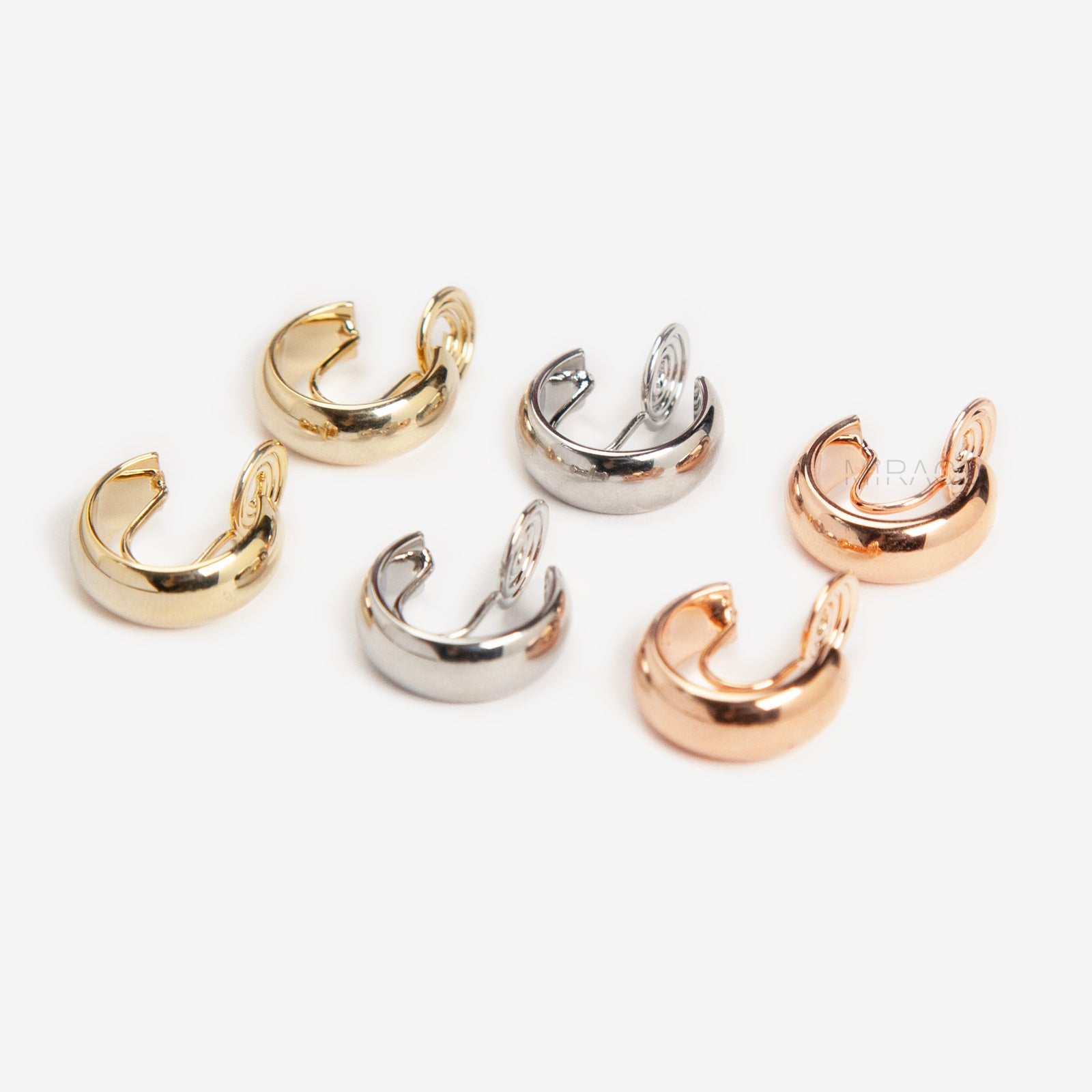 Minimalist clip-on huggie earrings in elegant gold and silver finishes. These small, stylish clip-on hoop earrings are perfect for non-pierced ears and everyday wear.