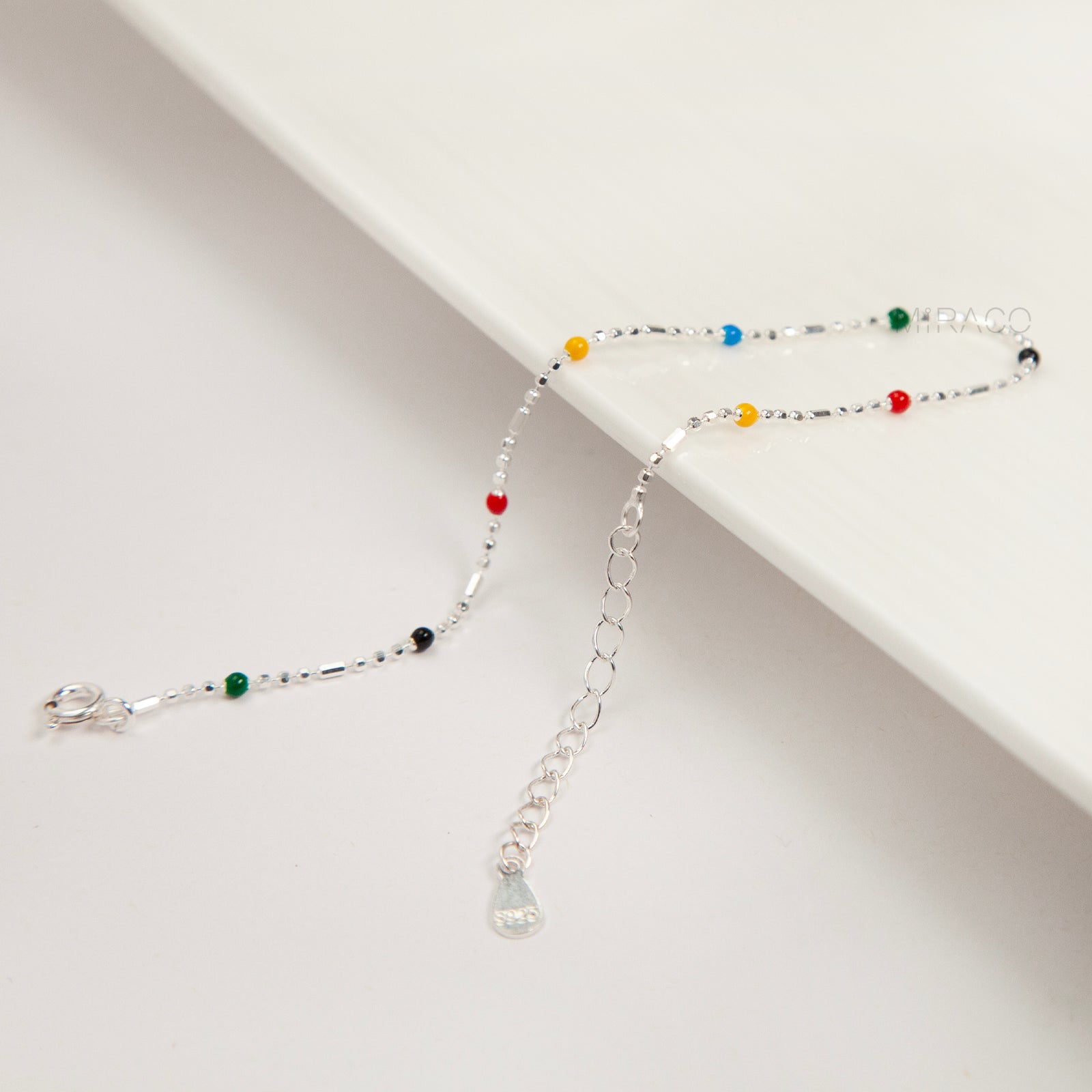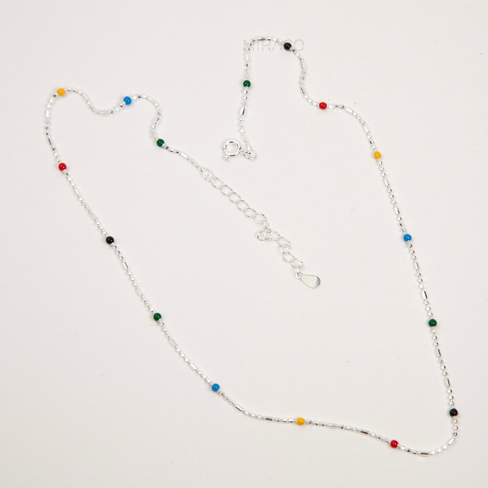 Designed with dainty little beads throughout, this sterling silver necklace and bracelet set adds a simple yet pretty touch to your look. The delicate chain is accented with colourful beads, bringing a playful sparkle to your wrist and neckline.